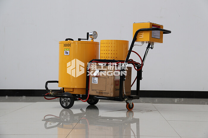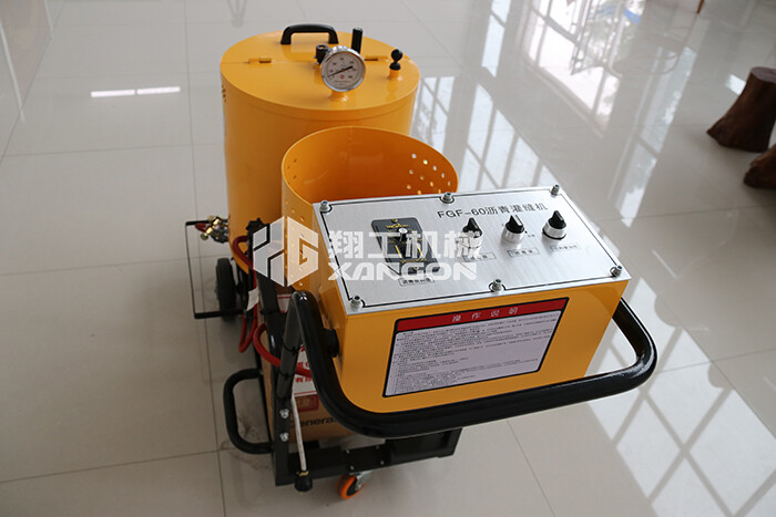 翔工60L手扶瀝青灌縫機(jī)采用液化氣加熱系統(tǒng),導(dǎo)熱油循環(huán),使瀝青或灌縫膠快速融化,通過(guò)瀝青泵的壓力由出料口出料而達(dá)到裂縫處理的效果。通過(guò)壓力注射式灌縫,使材料和縫壁緊密結(jié)合,轉(zhuǎn)向靈活的萬(wàn)向輪追蹤裂縫,使灌縫效果美觀。由于灌縫材料使用瀝青或灌縫膠,在溫度較低時(shí)容易凝固,灌縫機(jī)配有發(fā)電機(jī)組提供整機(jī)動(dòng)力,灌縫機(jī)在出料管部位采用恒溫控制系統(tǒng),避免材料燒焦老化,保證出料的順暢。