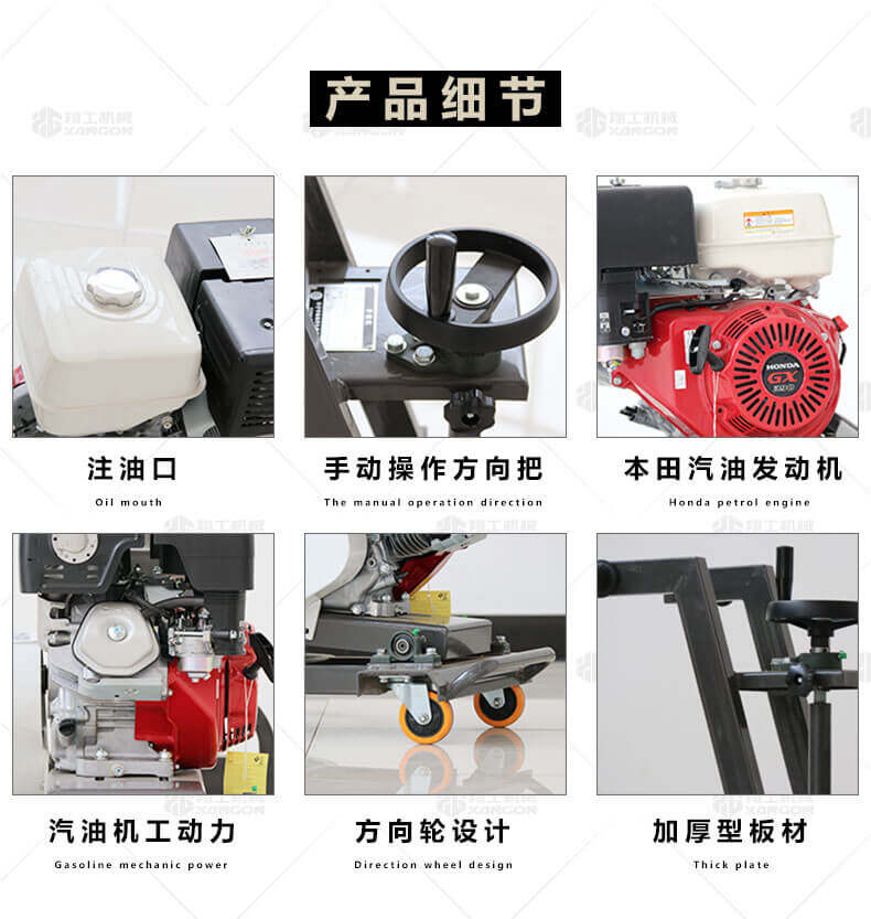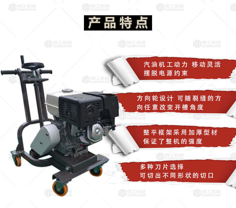 產品簡介: 適用于瀝青路面灌縫修補的裂縫打寬 。 產品特點: 汽油機工動力,移動靈活,擺脫電源約束;方向輪設計,可隨裂縫的方向任意改變開槽角度;整平框架采用加厚型材,保證了整機的強度;多種刀片選擇,可切出不同形狀的切口。