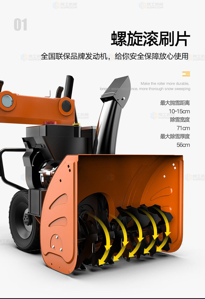 XG-71小型手扶自走清雪機掃雪機(黃色)