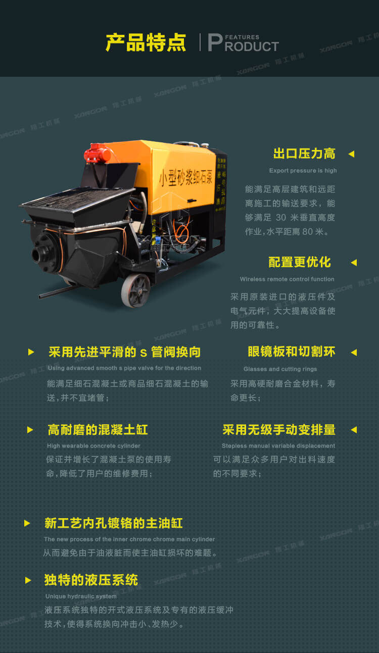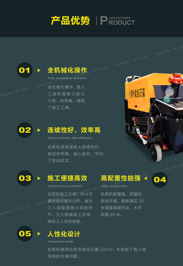 3.此泵機體積小,施工方便,操作簡單,可樓面直接澆注,大大降低了勞動強度。