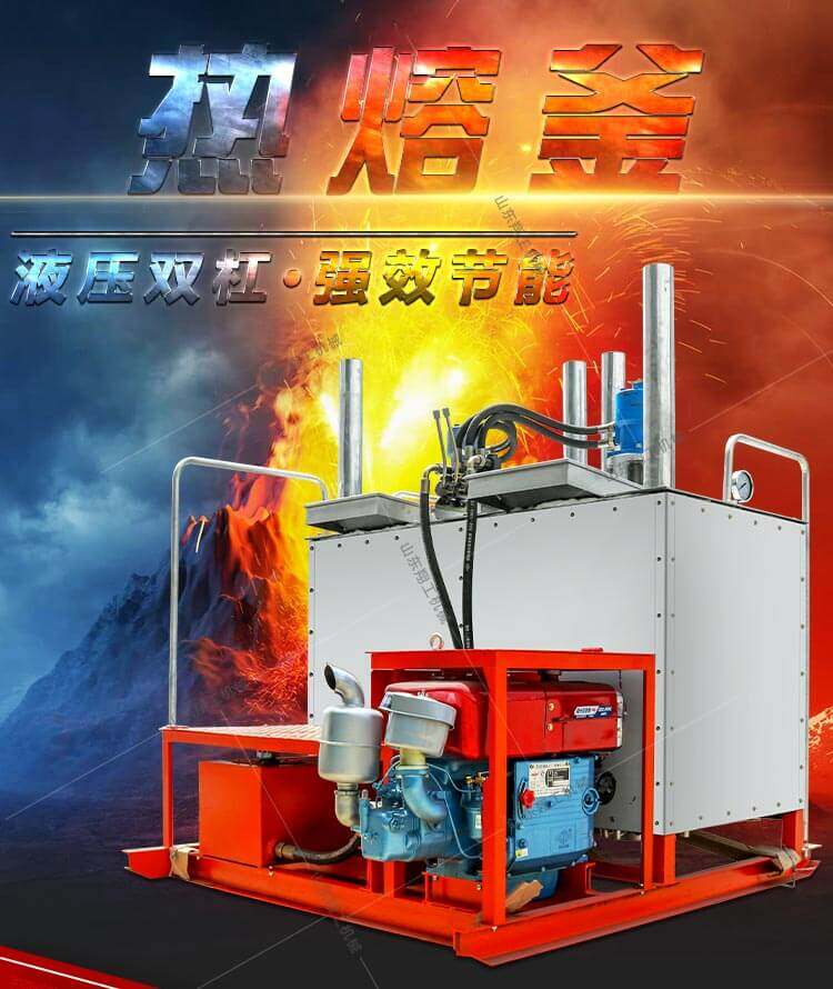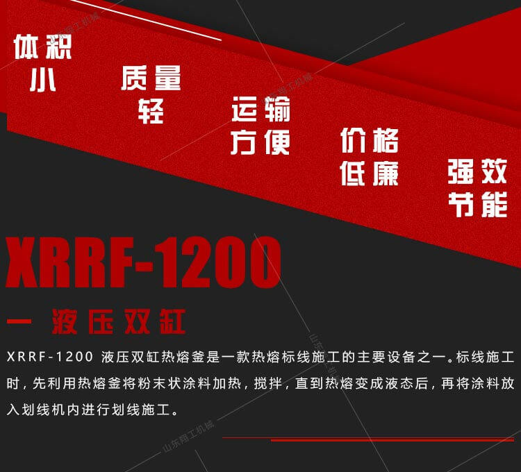 XG1200液壓雙缸熱熔釜是一款熱熔標線施工的主要設備之一。標線施工時,先利用熱熔釜將粉末狀涂料加熱,攪拌,直到熱熔變成液態(tài)后,再將涂料放入劃線機內進行劃線施工。