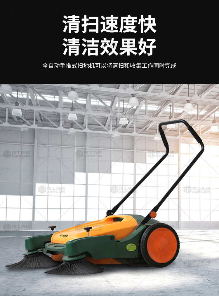 X920型全自動(dòng)手推式掃地機(jī)能清潔房屋周邊范圍:包括小路,公路,車道和院子,能比普通的掃把和簸箕節(jié)省5倍的時(shí)間,清掃時(shí)垃圾被迅速的收集到塵箱,簡(jiǎn)單、快速、干凈。
