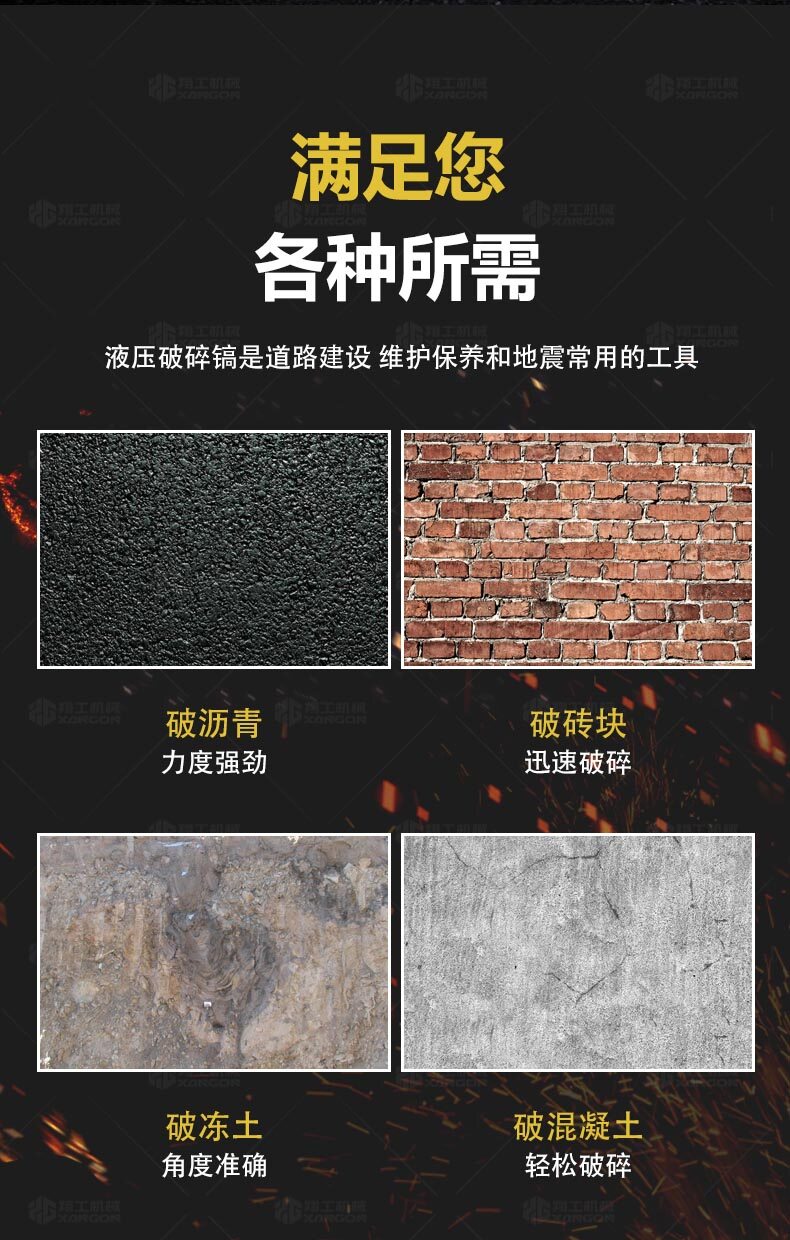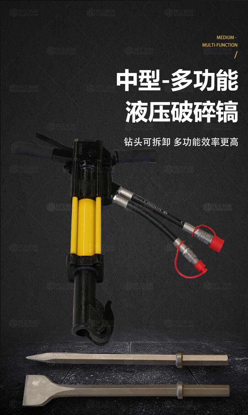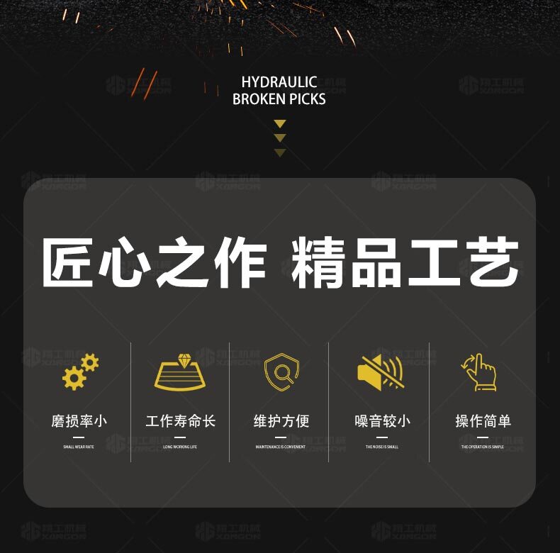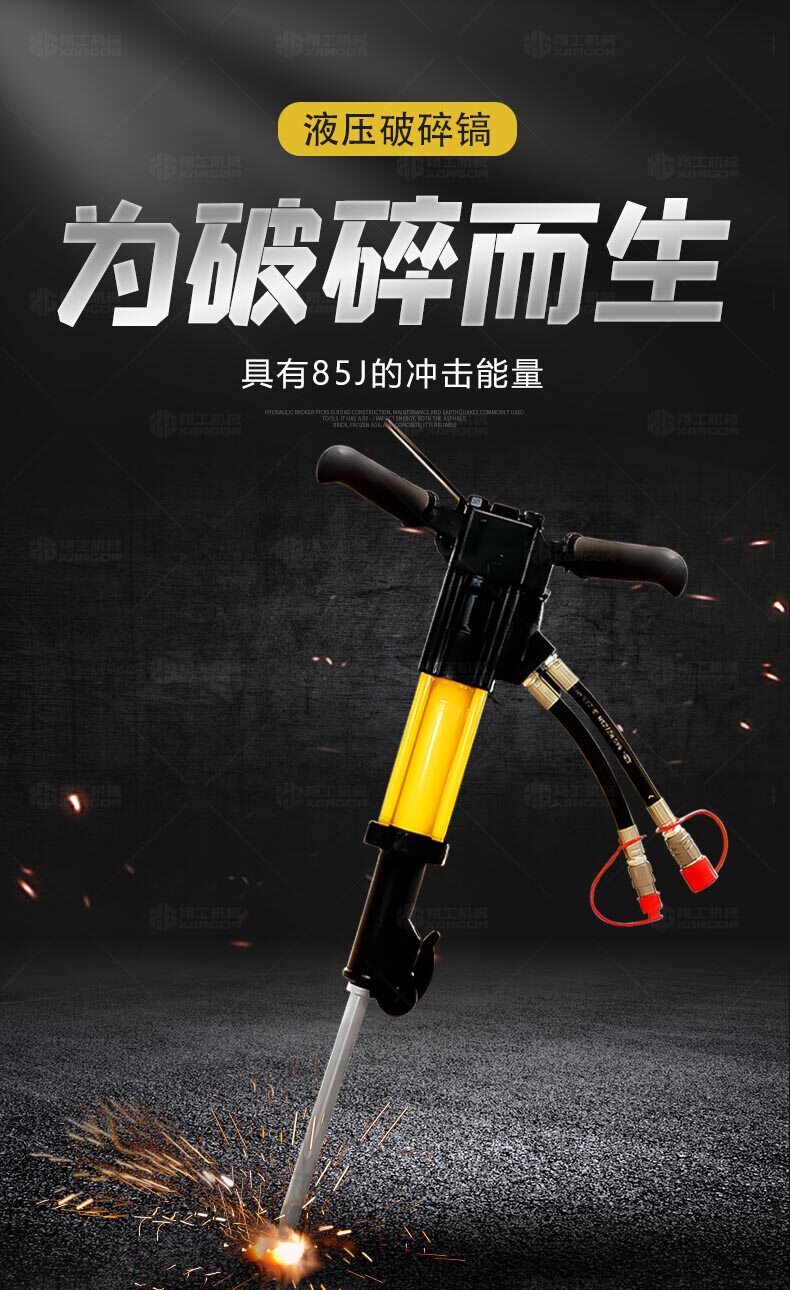 沒有哪個破碎鎬工具有液壓破碎鎬那樣的沖擊破碎能力。液壓破碎鎬的功率在所有鎬類工具中是高的,而其工作噪音也遠比氣動工具要小。