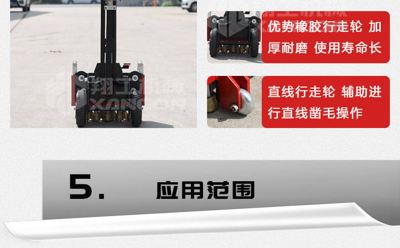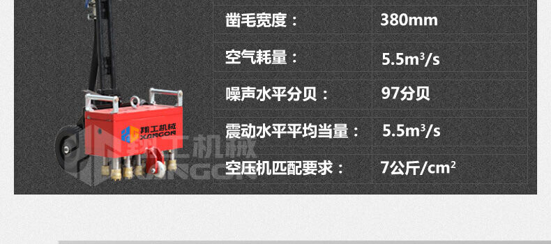8、震動傷害小。 鑿毛機可在對主體無任何破壞的情況下,在1-100mm鑿剔深度之間自由掌控,鑿除混凝土表面光滑面積可達100%,鑿毛能力可根據混凝土的不同強度和深度,每小時可達到4m2--100m2的工作量。與傳統鑿毛工藝相比,可明顯加速工程進度,降低勞動消耗,減少環境污染,節省工程造價,實現理想的工程質量,具有廣闊的市場前景。