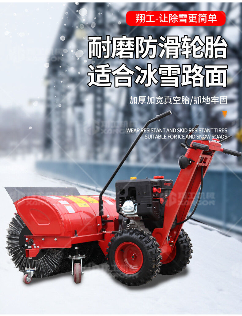XG-8918小型掃雪機是一款地面拋雪機,路面拋雪機,道路拋雪機。這款拋雪機采用LC185F(D)S,OHW 4-stroke發動機,強勁有力。葉片高速旋轉將雪旋進掃雪車里,再通過導管運到儲雪箱中。其特點是:采用大功率主機,寬幅、高效,使用較廣。