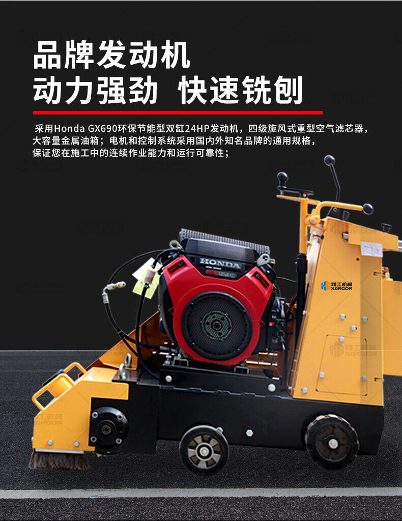 小型液壓銑刨機采用Honda GX690環(huán)保節(jié)能型雙缸24HP發(fā)動機,四級旋風式重型空氣濾芯器,大容量金屬油箱;采用名優(yōu)電機和控制系統(tǒng),保證您在施工中的連續(xù)作業(yè)能力和運行可靠性;