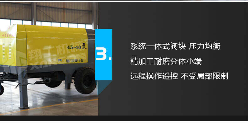 產品特點: 1,大流量 采用加粗料缸,讓機械每一次循環出料多20% 。 2,效率高 移動便捷全部采用快接式管道卡,提高工作效率 。 3,便捷 本機可遠程遙控,操作不受地點限制,更加人性化。