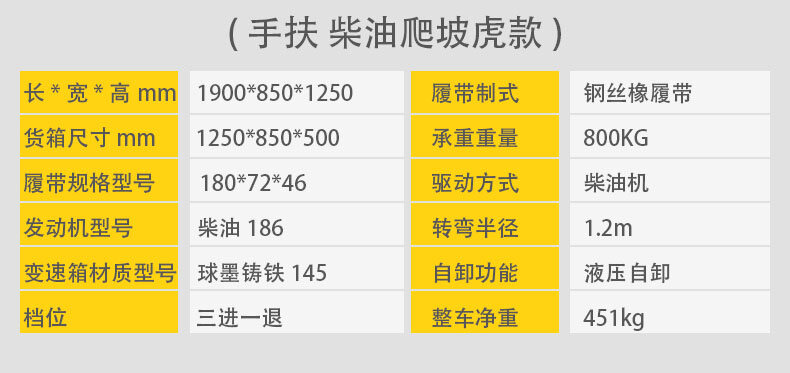 手扶式履帶運(yùn)輸車它是采用手扶式的方式駕駛,自動(dòng)靈活,安全可靠,可以在泥濘、結(jié)冰道路、沙漠、沼澤以及土質(zhì)松軟或氣候條件不太好的接近角和離地角行駛。它的性能穩(wěn)定,功能強(qiáng)勁,使用能力進(jìn)一步提高。運(yùn)載能力強(qiáng),爬坡能力大,操作簡單,維修保養(yǎng)容易。