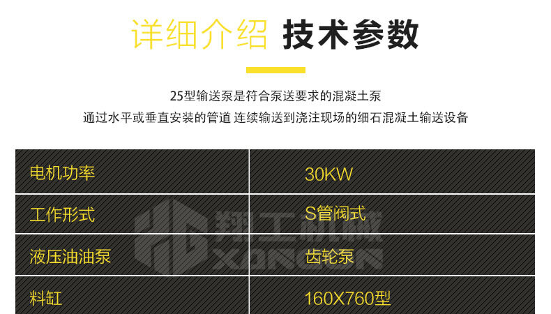 25型二次構造柱專用輸送泵是一種復合泵送要求的混凝土泵,通過水平或垂直安裝的管道,連續輸送到澆注現場的細石混凝土輸送設備。