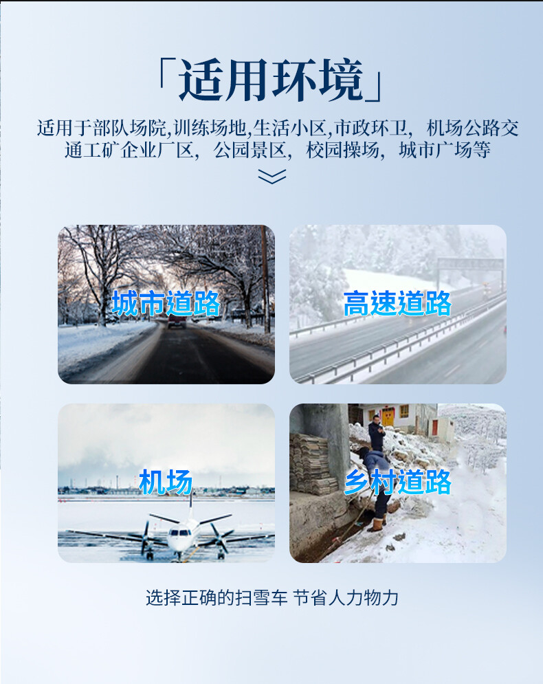 冬天如果下雪就會導致路面結冰,給我們的出行造成阻礙,所以我們這款暴風雪掃地機清掃路面能夠一次清理干凈積雪,保證路面清掃之后的出行安全,采用硬度適中的毛刷不損傷標志線,不損傷路面,這是一臺環保型除冰雪車,除雪效率非常高,更加適合路面清掃積雪使用。