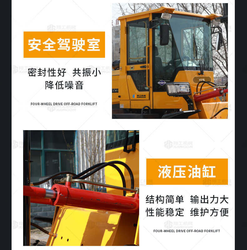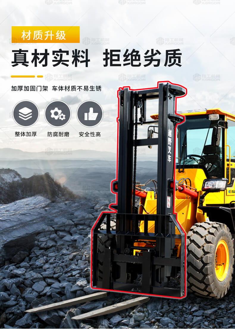 3.普通叉車只能在平整的路面上作業,而越野叉車既可以在普通路面上作業,還可以在山路泥路崎嶇道路作業,輪胎抓地力強,不打滑。