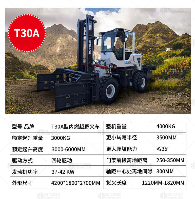 越野叉車可以在坡地和不平地面上進行貨物裝、卸、堆垛及搬運作業,具有良好的機動性、越野性可靠性。其功能多樣,可搭配側移器、調距叉、旋轉器、軟包夾、推出器、側翻叉、側翻斗、起重臂等工具完成不同的工作。
