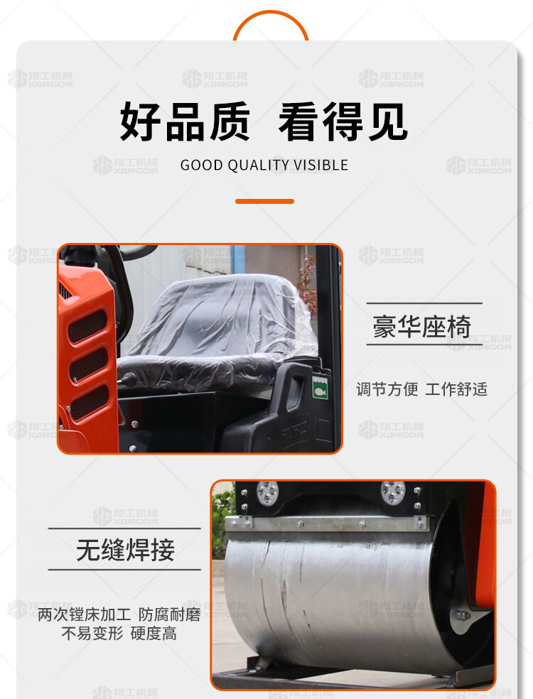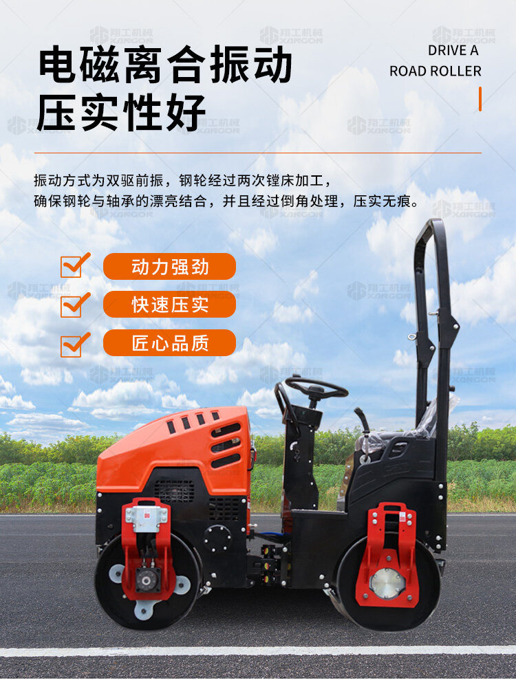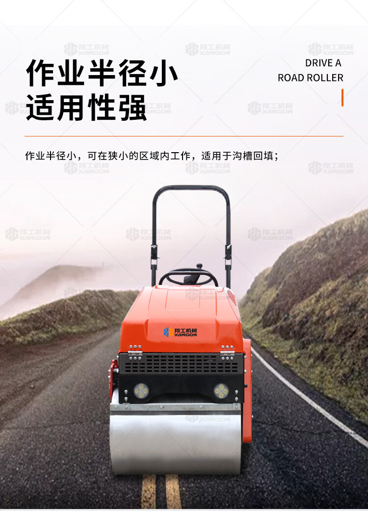 1t小型座駕壓路機體積小,行走靈活,可以用于瀝青壓實、回填作業、溝槽壓實作業、體育場地等壓實作業,應用范圍廣,性價比高。經典橘紅色款非常受歡迎。