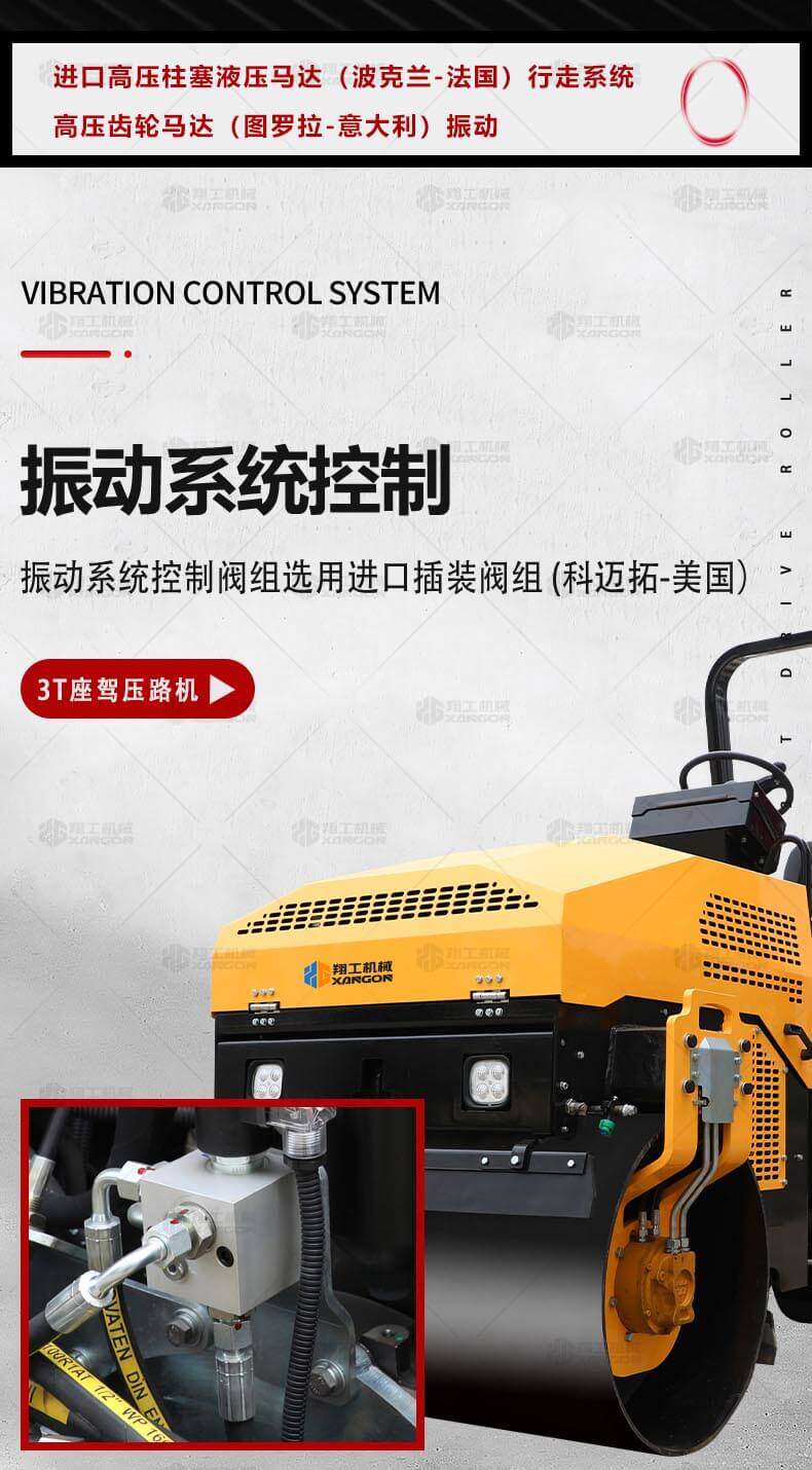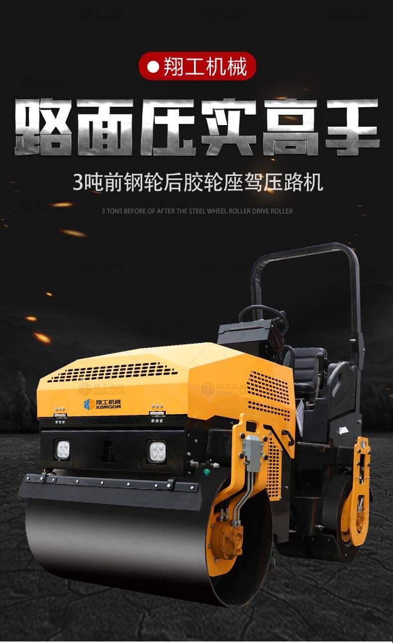 3噸前鋼輪后膠輪瀝青路面壓路機(jī)(新款)