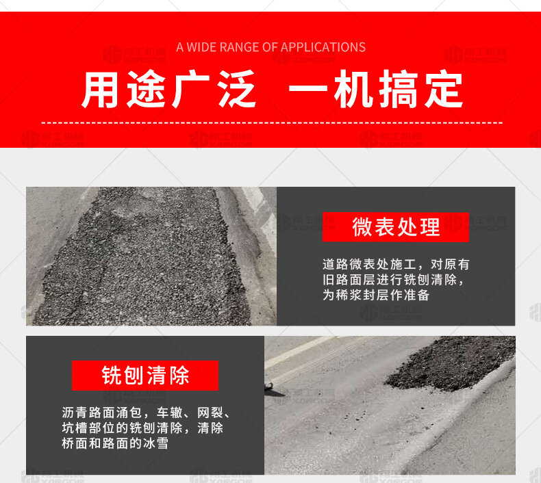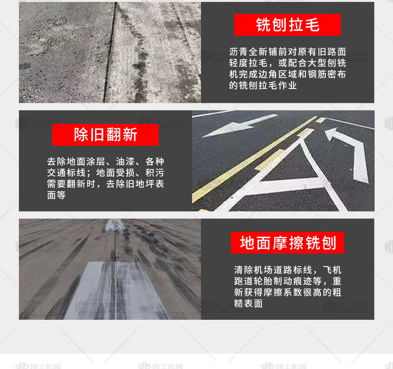 路面銑刨機是瀝青路面養護施工機械的主要機種之一,瀝青混凝土路面養護施工的主要設備之一,主要用于公路、城鎮道路、機場、貨場等瀝青混凝土面層的開挖翻新,也可以用于清除路面擁包、油浪、網紋、車轍等缺陷,還可用來開挖路面坑槽及溝槽,以及水泥路面的拉毛及面層錯臺的銑平。