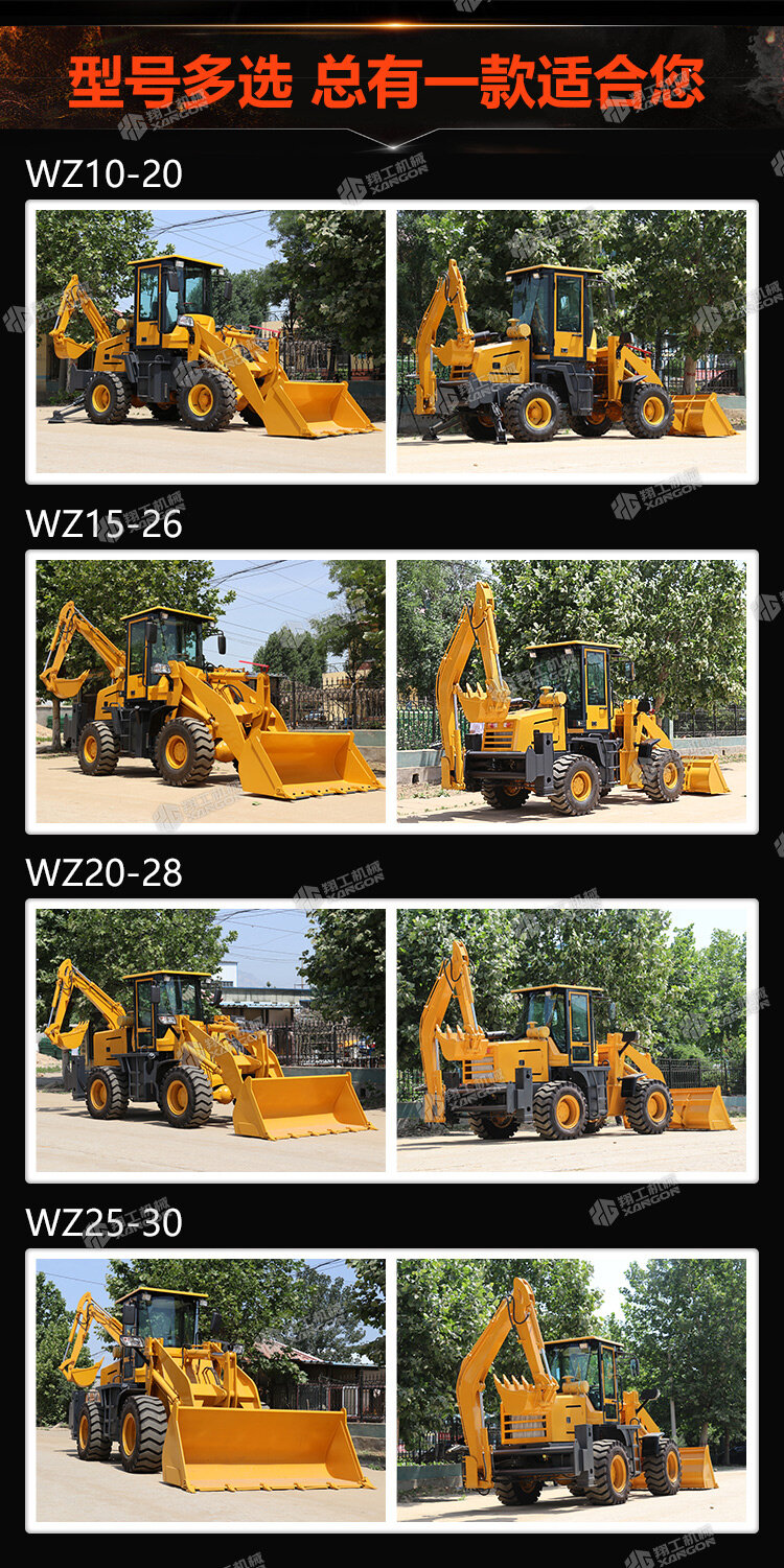挖掘裝載機主要用于城市和農村的公路建設及養護、電纜鋪設、電力和機場工程、市政建設、農田水利建設、農村住宅建設、開山取石以及各種小型建筑隊所從事的各種建筑施工工程。