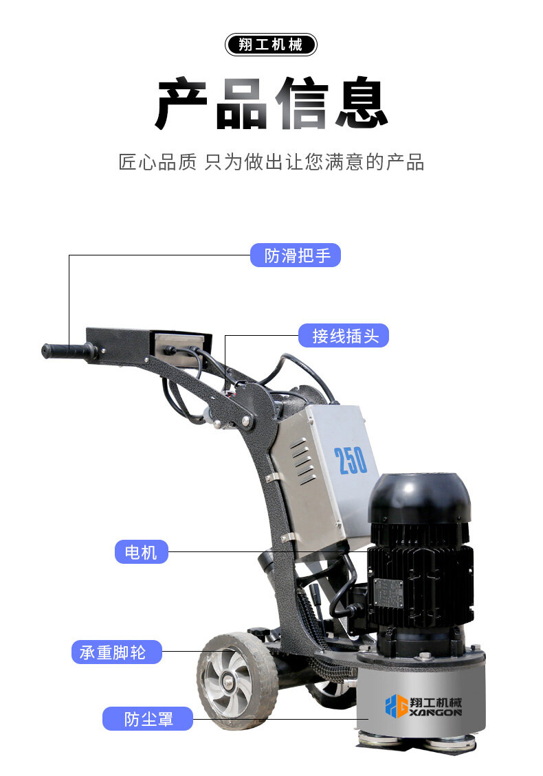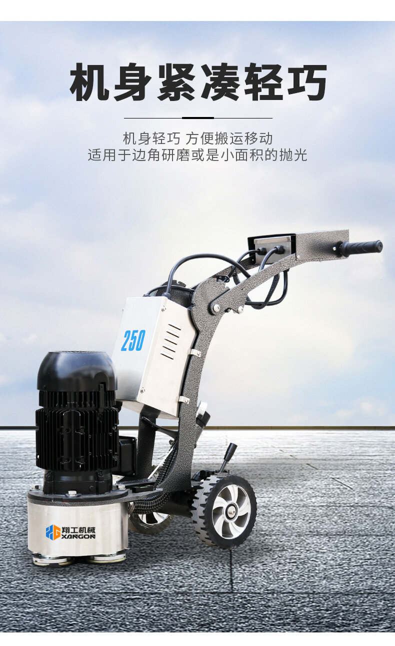 250拋光修邊機也叫混凝土地坪邊角機,適合邊角、小面積打磨,機動靈活,使用方便,下面帶大家來了解一下這款產品詳情。