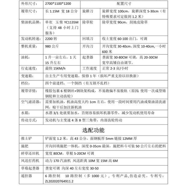 田園管理機是一種多功能小型農田作業機械。該機具有重量輕、功能多的特點,主要作業項目有深旋、噴藥、復土、鋤草、中耕、開溝、起壟、破碎、運輸、起壟覆膜、根莖收獲等。