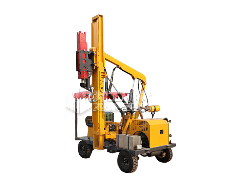 小四輪打樁機適用于公路護欄鉆孔、打樁、拔樁,其他各種場地打樁(農場、園林、果園),公路野外工程施工。