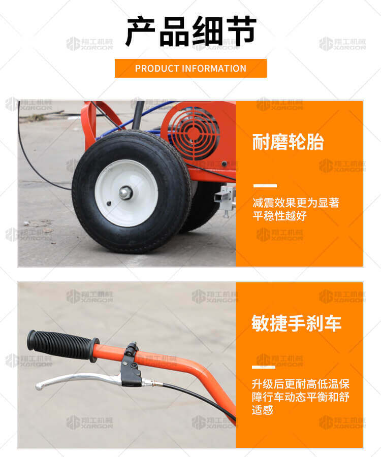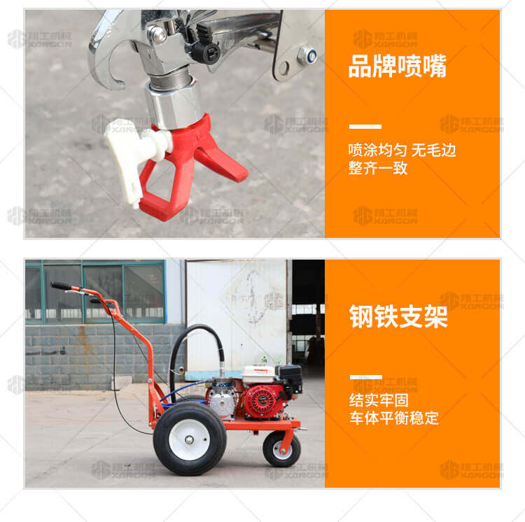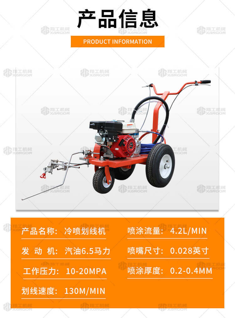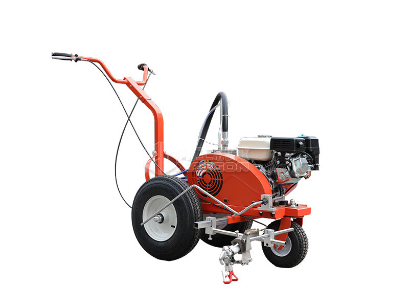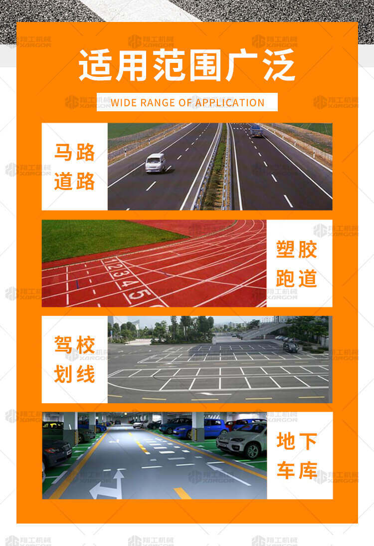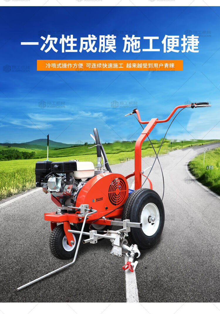 小型手推式道路劃線機是一種在道路、停車場、廣場和跑道等平整地面上劃出不同約束、指引和警示等規則限制標志的路面施工機械。最常見的就是在馬路上劃斑馬線,在路上劃車庫線、停車線等等應用于小型工程、短途施工,活動方便,靈活操作。 道路劃線機有冷噴式和熱熔式兩大類,冷噴式操作方便,施工快捷,可連續快速施工,越來越受到用戶青睞。熱熔式要帶上熱熔高溫爐等諸多輔助設施,施工時要間歇地從熱熔高溫爐取料,施工速度很慢,操作便捷性不夠且效率低,但一次成膜較厚。目前,比較常用的是冷噴手推式劃線機,它可運用于一般公路中小工程,運用于廠區或地下室小工程劃線施工。