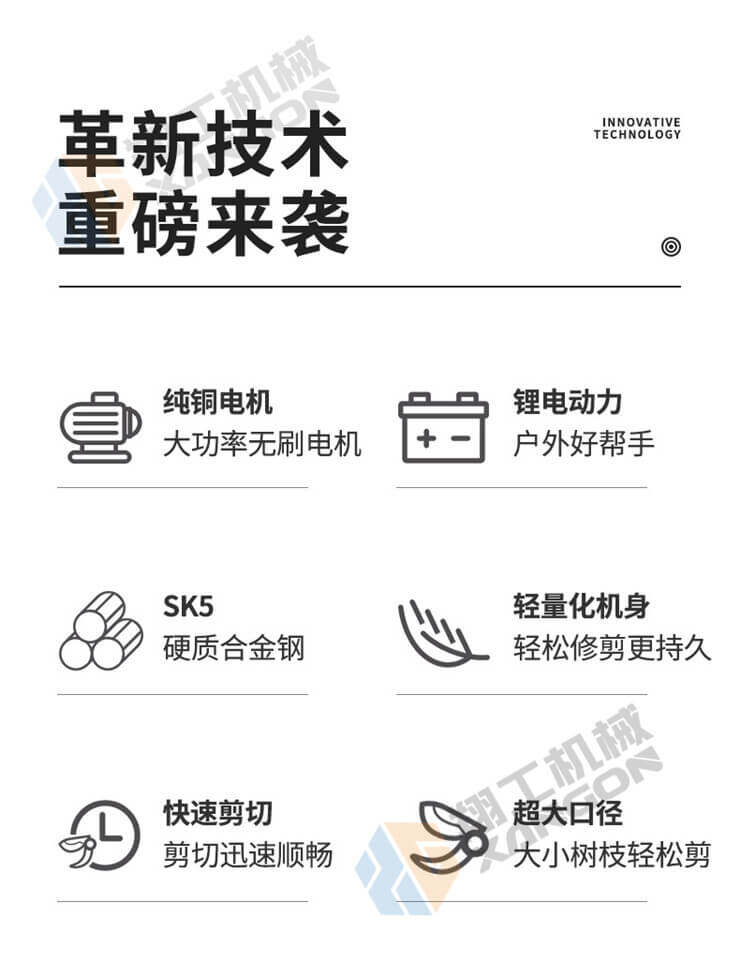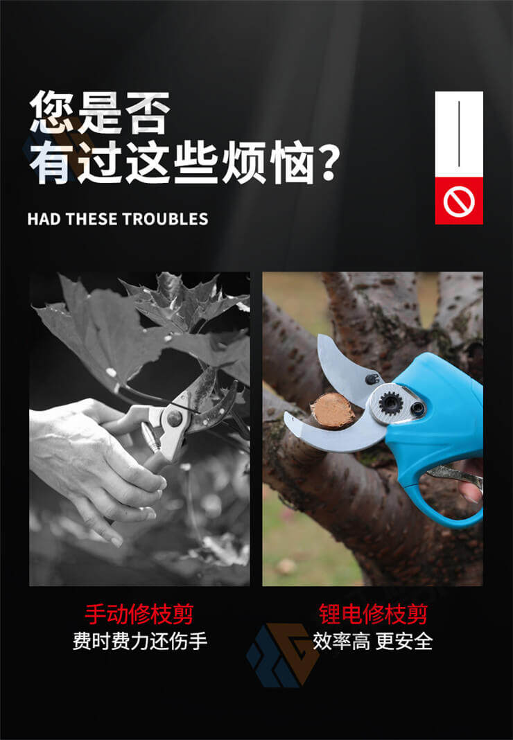 如果您是專業果樹剪枝從業人員,有了它: 1、您可以成倍提高剪枝效率,增加剪枝收益。 2、真正實現靠技術及先進設備賺錢,而不是以前的靠體力營生。 3、剪枝作業結束后,將不會有長時間手指、手臂疼痛難忍的情況出現,您可以繼續輕松生活。