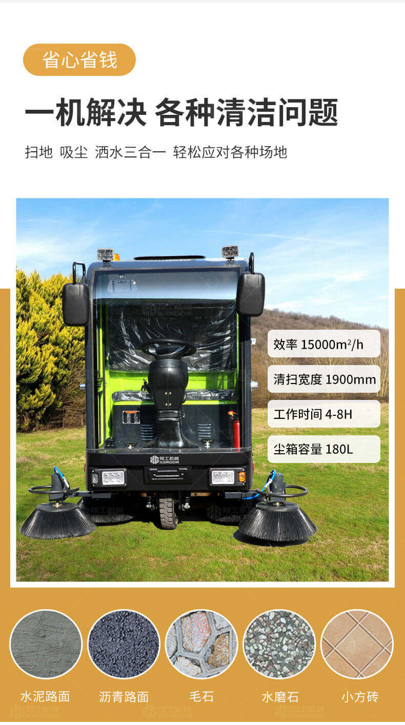 全封閉五刷加強版掃地車它的使用大大解放了勞動力,其作業能力強,作業效率高。翔工機械重視研發,不斷的創新,不斷的提高產品質量,完善性能,為大家提供質優價廉的產品