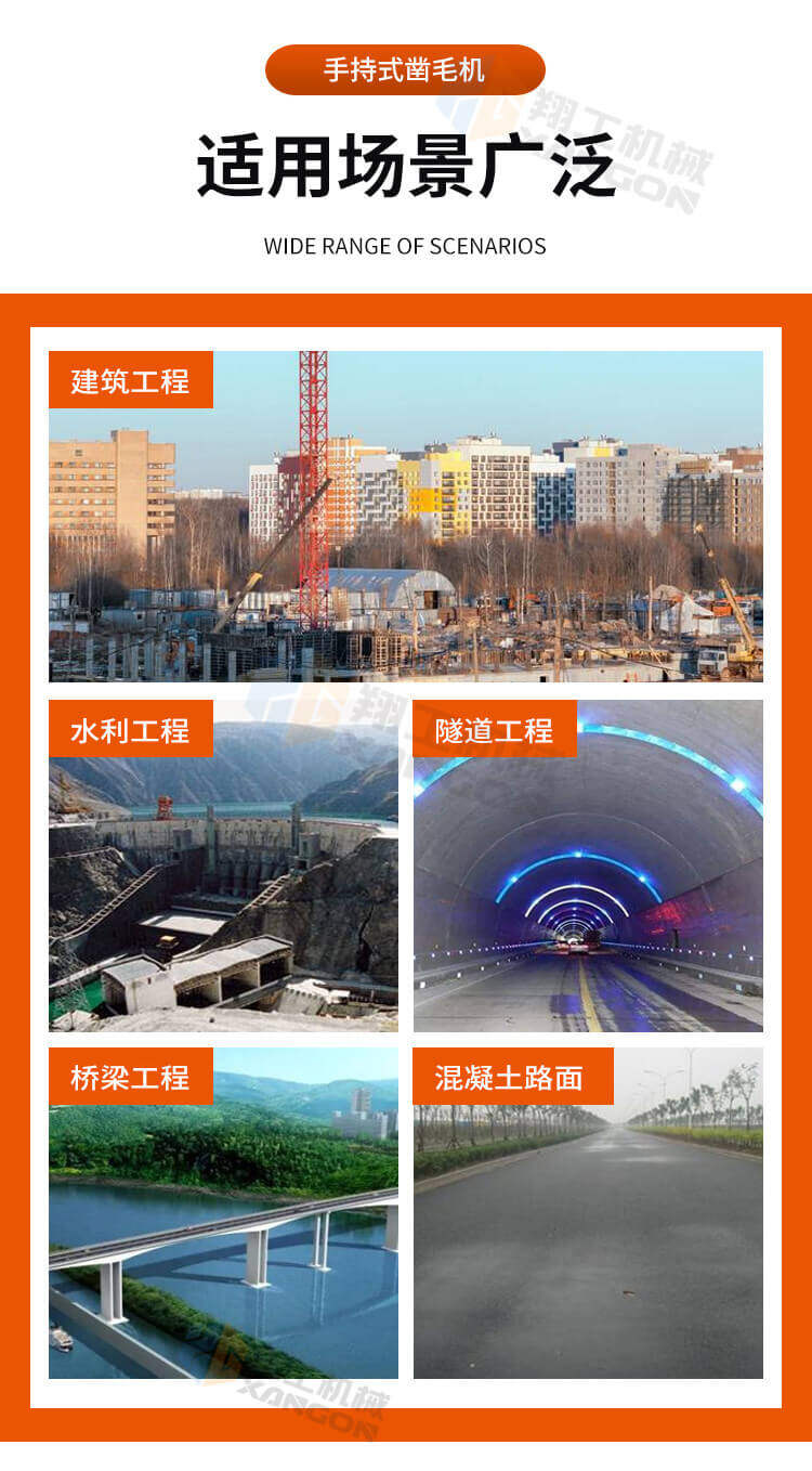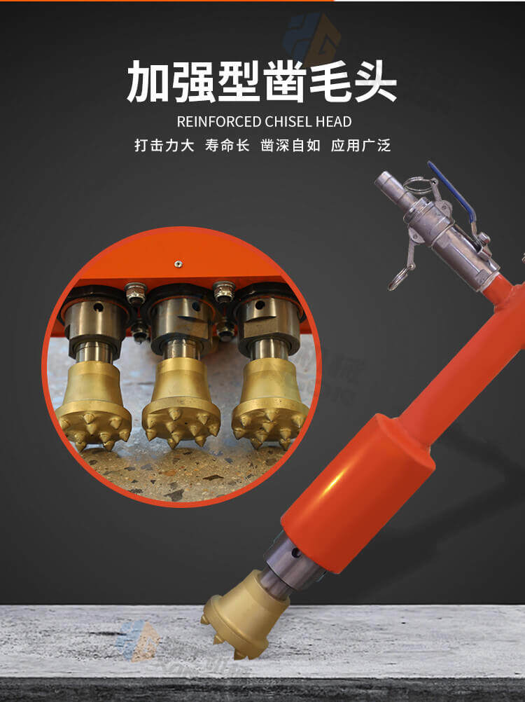 手持式懸掛鑿毛機機身有吊環,鑿墻面的話吊起來使用,對平面、立面、弧形等多角度進行鑿毛作業,打擊力大、鑿深自如,應用領域非常廣泛,又省力還方便。 主要適用于水庫、大壩滲漏,險橋危橋、電廠、隧洞、高速公路、鐵路橋面以及箱梁混凝土等眾多領域 。主要是對混凝土表面進行剔鑿,建筑物墻體、地面以及市政工程混凝土面層剔除、修補、翻新、加固等。