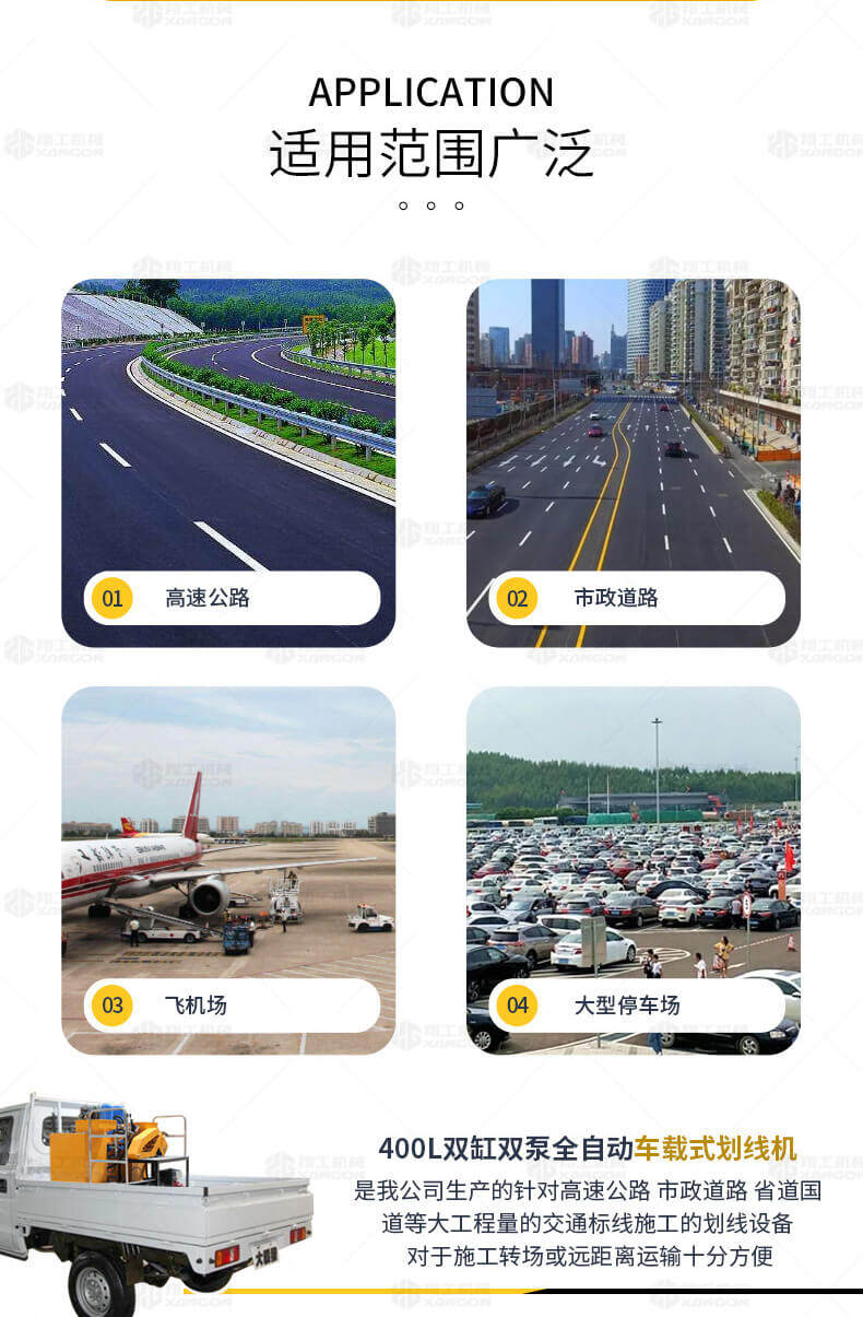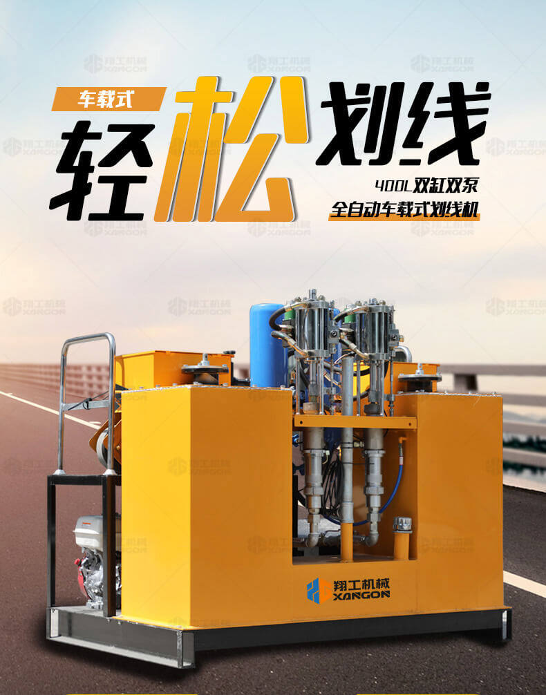 400L雙缸雙泵全自動車載式劃線機是我公司生產的針對高速公路、市政道路省道國道等大工程量的交通標線施工的高效畫線設備。