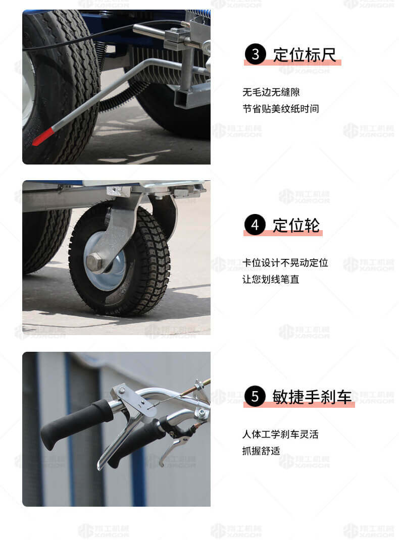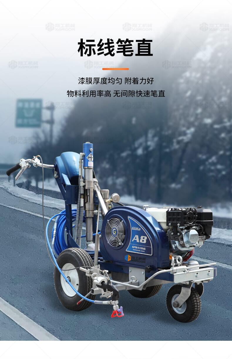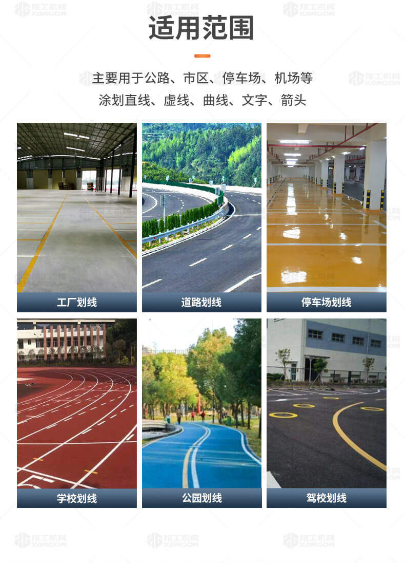 主要用于公路、市區(qū)、停車場、機(jī)場等涂劃直線、虛線、曲線、文字、箭頭等。具有劃線效果好、速度快、效率高、適用范圍廣、使用方便等優(yōu)點(diǎn)。