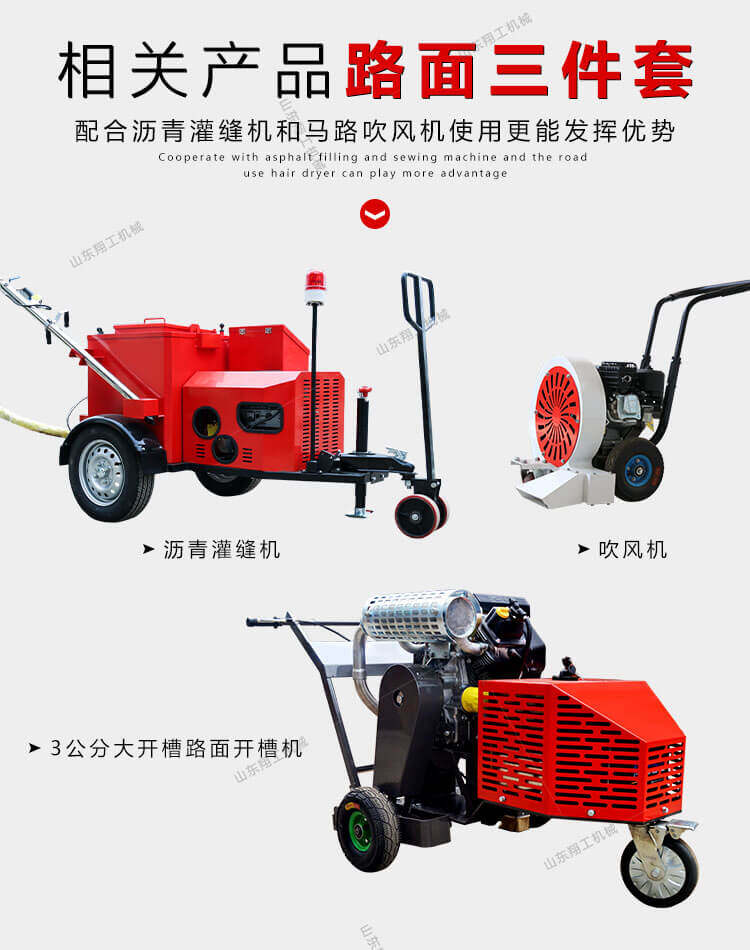 路面開槽機適用于瀝青路面灌縫修補前的裂縫打寬。該設備具有使用方便,擴縫速度快,刀片使用壽命長,擴縫寬度可調等優點。