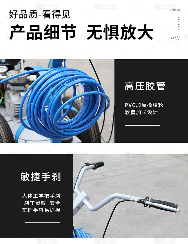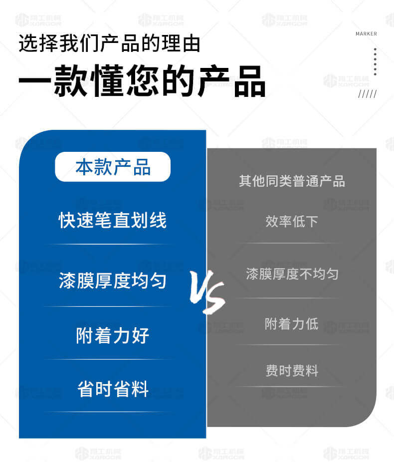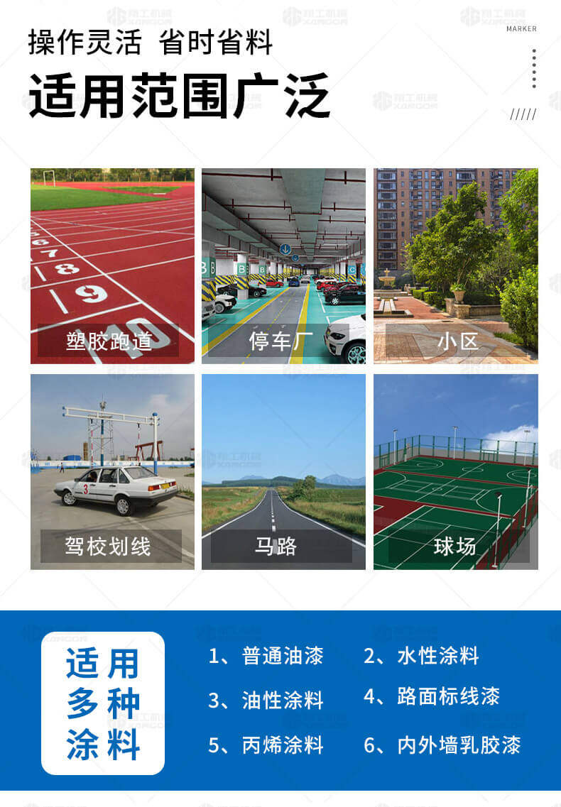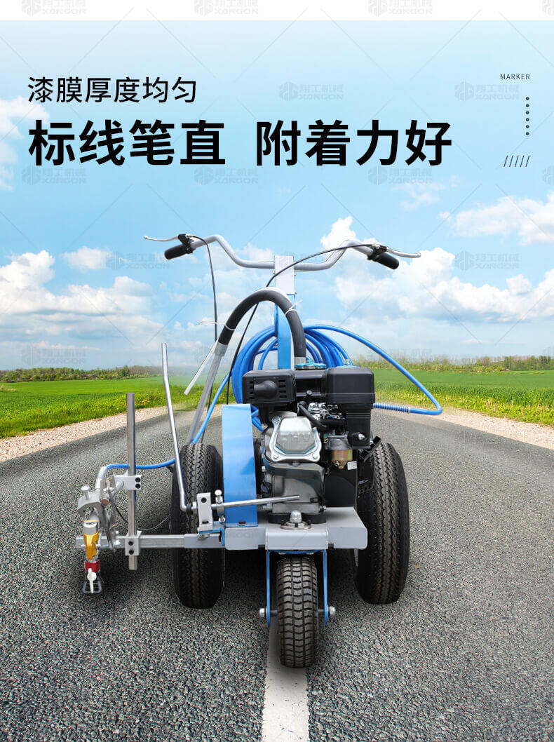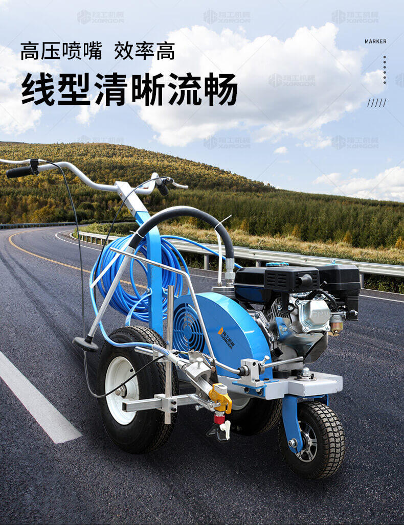 主要用于公路、市區、停車場、機場等涂劃直線、虛線、曲線、文字、箭頭等。具有劃線效果好、速度快、效率高、適用范圍廣、使用方便等優點。