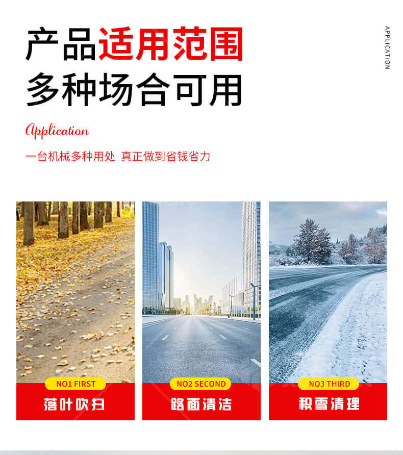 高速公路應(yīng)急車道日常清掃;各種場合積雪、樹葉快速吹掃;結(jié)冰路面快速撒布融雪劑;