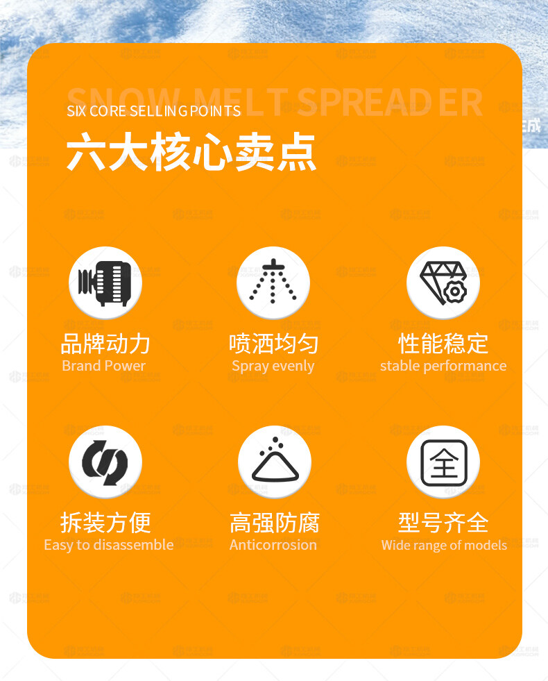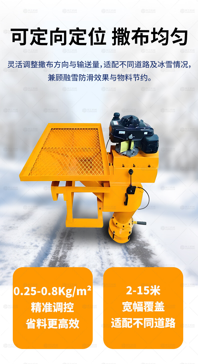 融雪劑撒布機是車載式撒布機,適用于冰雪路面防滑沙料和融雪劑的撒布,是市政公路、高速公路的融雪撒布的便利設備。融雪劑撒布機由發動機、變速箱、機體、調節手柄、拋頭等主要部分組成,將安裝架掛在車后擋板上。