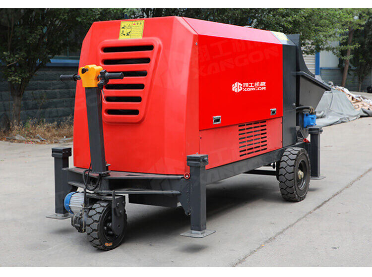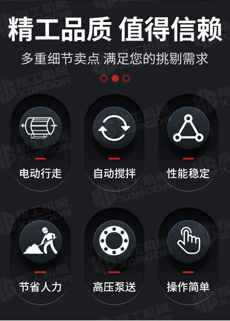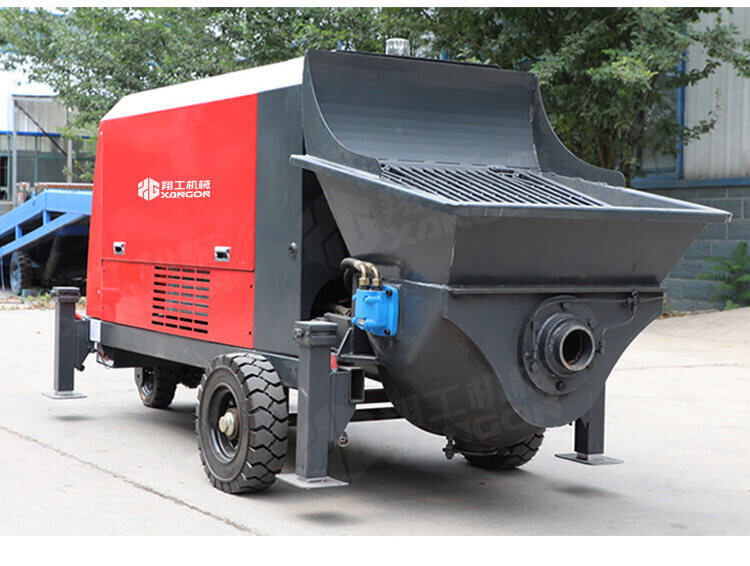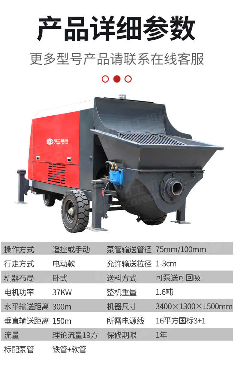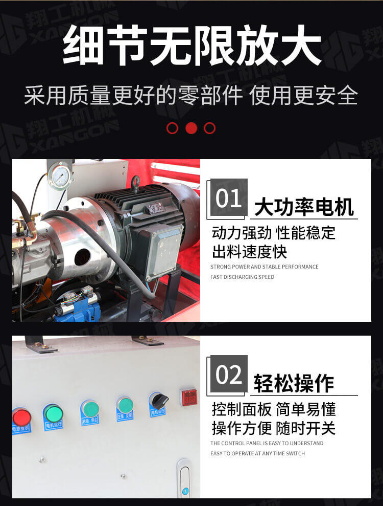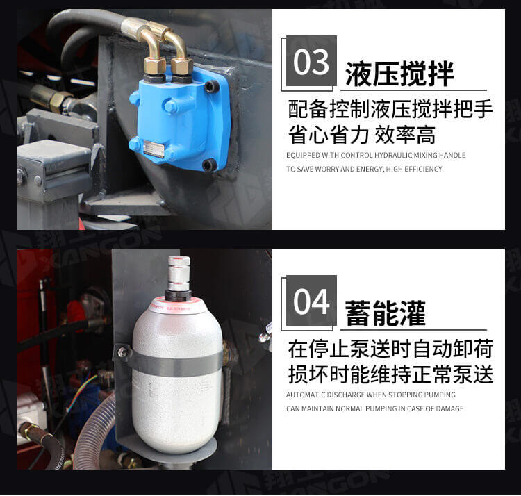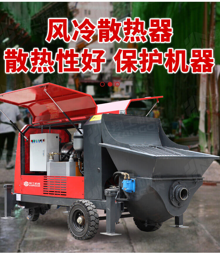 采用獨創的泵車尾輪驅動系統輕松解決移動時帶來的各種困難;采用雙排風冷散熱系統散熱效果更好,液壓系統采用壓力更高,性能更穩定的柱塞式自動變量主油泵,采用先進的三維立體壓模一體式自動攪拌料斗可輸送機制砂,高標號混凝土,有效緩解積料問題。