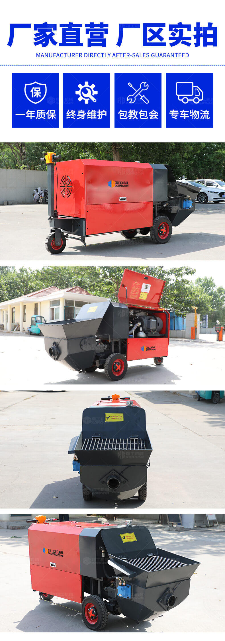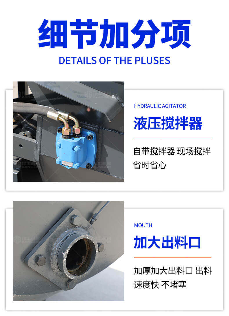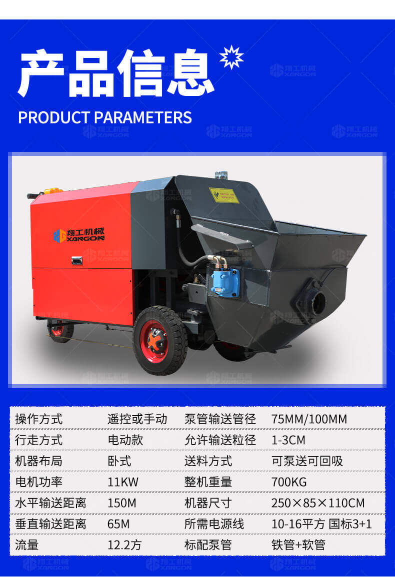 采用獨創的泵車尾輪驅動系統輕松解決移動時帶來的各種困難,采用雙排風冷散熱系統散熱效果更好,液壓系統采用壓力更高,性能更穩定的柱塞式自動變量主油泵,采用先進的三維立體壓模一體式自動攪拌料斗可輸送機制砂,高標號混凝土,有效緩解積料問題。