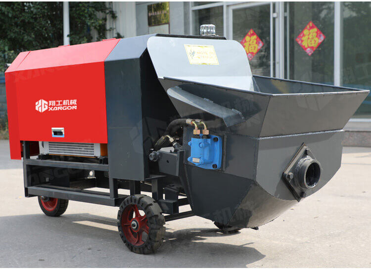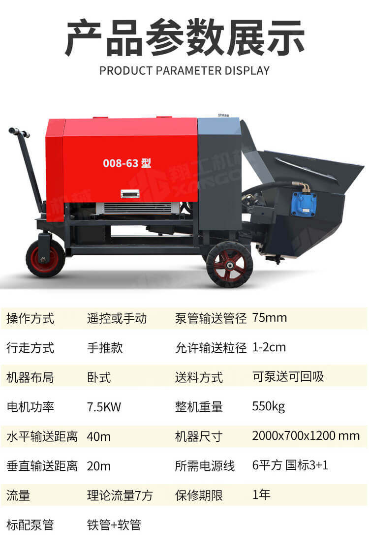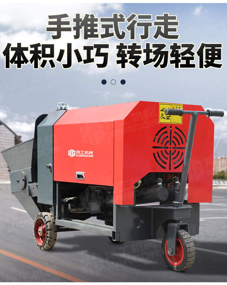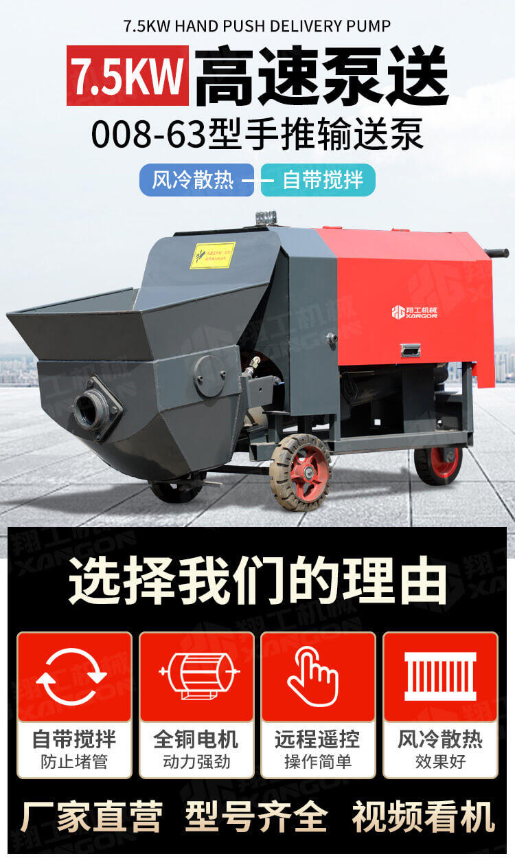 本產品為手推式行走臥式造型輸送泵,料斗帶攪拌功能,可泵送機制砂;風冷散熱,散熱效果好;集成芯片控制箱,多條備用線路獨立設計,不用擔心控制系統問題;操作部件采用24v 安全感應電壓,安全可靠;S 彎采用兩個單向油缸,速度均勻。