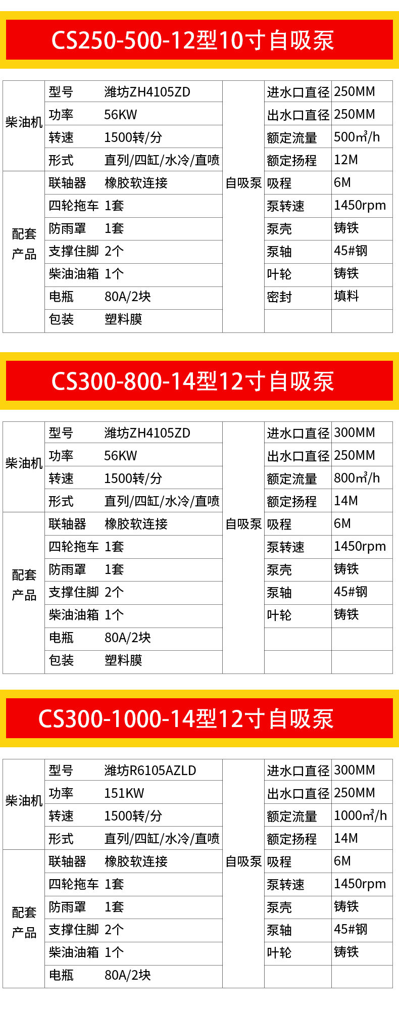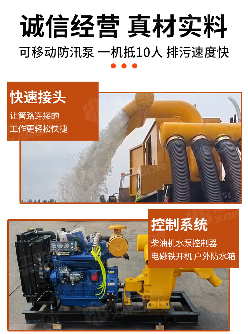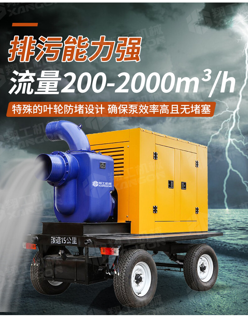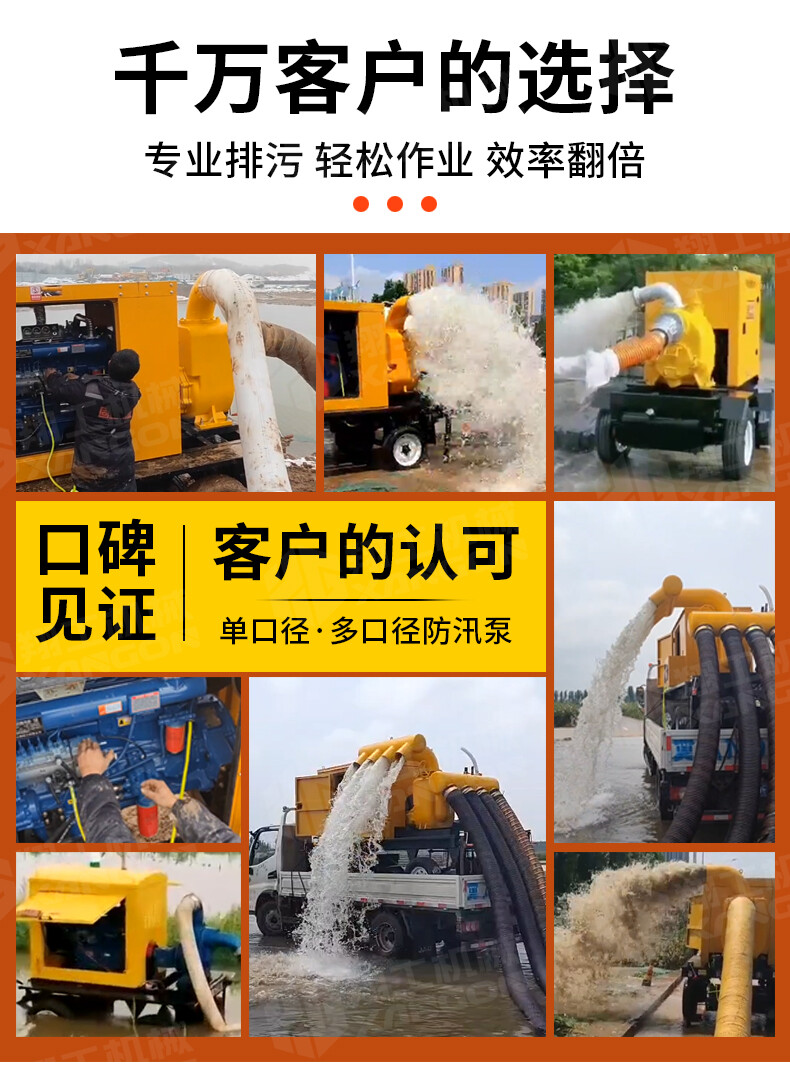 移動防汛排水泵 大口徑大流量 防洪排澇 應急排水 型號齊全