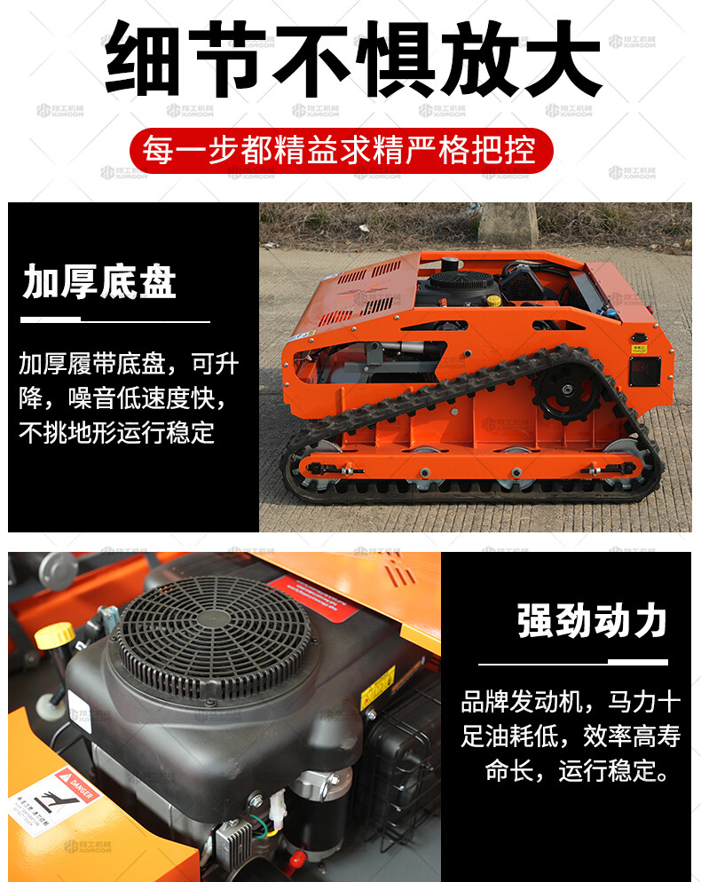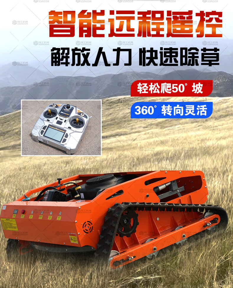 遙控割草機是一種通過無線遙控操作的現代化果園除草設備,結合了傳統割草機的功能與智能操控技術,為用戶提供更高效、靈活的園林養護體驗。