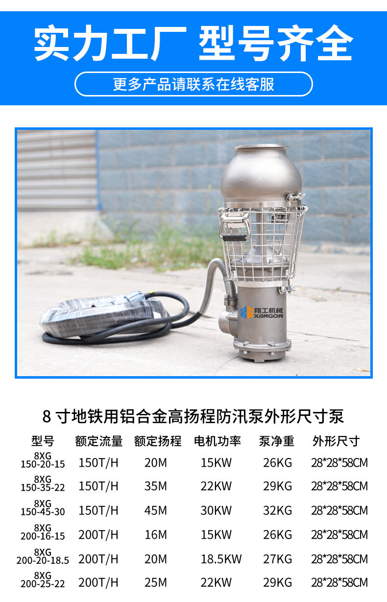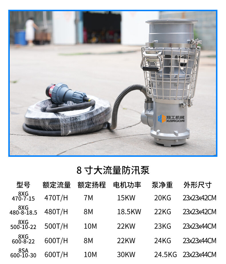 8寸大流量防汛泵,鋁合金輕量化設計,高效排水,抗腐蝕性強,適用于地鐵、隧道等防汛搶險,移動便捷,應急能力強。