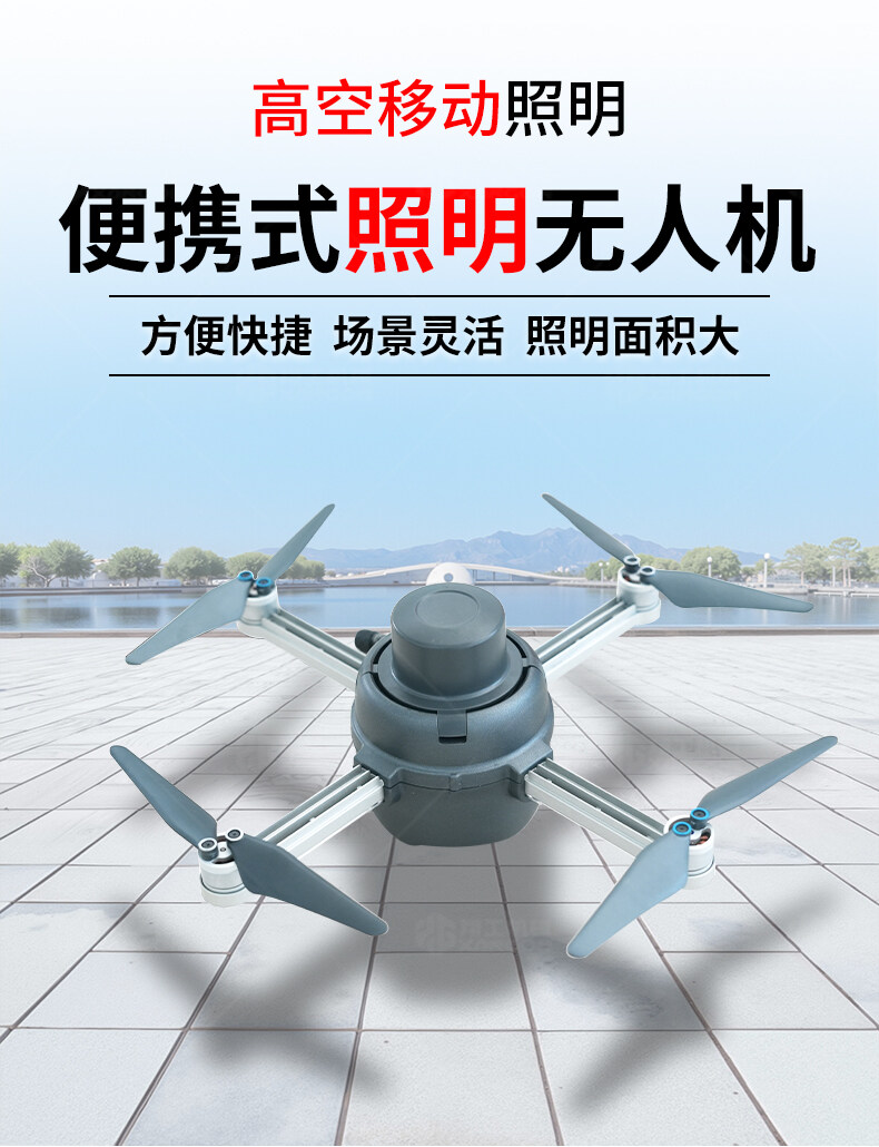 本產品是一款集無人機與強光照明于一體的移動應急裝備。采用便攜折疊設計,可快速部署升空,提供高空廣域照明。具備長續航、高亮度、抗風穩像等特點,廣泛適用于夜間救援、工程搶險、警勤巡邏及大型活動保障等場景,是提升夜間作業效率與安全的理想選擇。