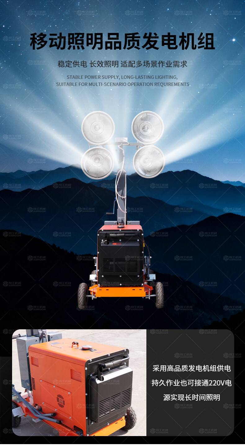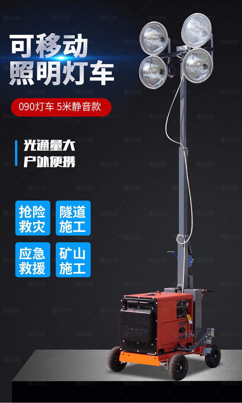 本款燈車采用5米升降桿,靜音發(fā)電機,照明覆蓋廣且運行噪音極低。具備移動靈活、一鍵升降、防水防塵等特點,續(xù)航持久。專為對噪音敏感的場景設計,如夜間市政施工、室內場館作業(yè)、應急搶險及大型活動保障,是實現(xiàn)高效、環(huán)保照明的理想解決方案。